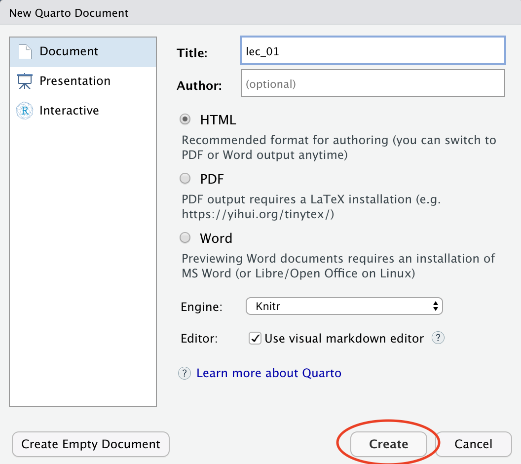 Name the document “lec_01” and hit create