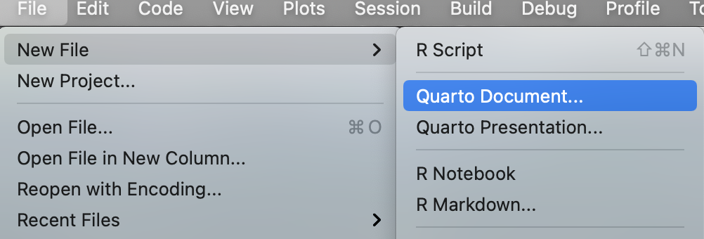 Starting a new quarto file